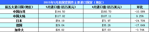 5月美国紧固件前五大进口来源地为中国台湾、中国大陆、日本、德国和加拿大。前五大出口目的地为墨西哥、加拿大、中国大陆、英国和德国。